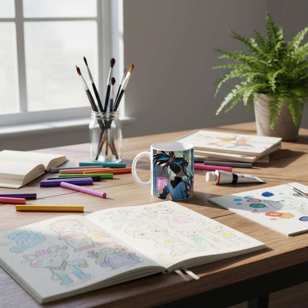 Like magic, the inspiration for this mug was born. It's ceramic with a lovely gloss and dishwasher safe which is always a plus, and I like to think I've done a great job paying tribute to anime with this design